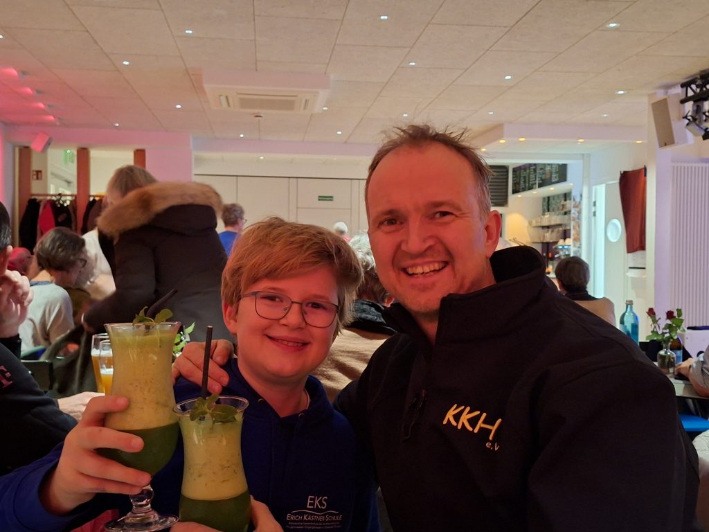 Mehrere Mitglieder der Kenia Kinder Hilfe e.V. folgten der öffentlichen Einladung zum kleinen Mittwoch im Kulturcafe Windrose. Der Saal war für die Reihe „Kleinkunst und Plaudereien“ bis auf den letzten Platz proppevoll gefüllt. Gastgeber Kai Ahnung alias Dieter Becker präsentierte zwei großartige Künstler, Miriam Willems und Sebastian Heller, aus dem Bereich Artistik & Ball-Jonglage und plauderte anschließend mit ihnen auf dem roten Sofa über deren Werdegang.