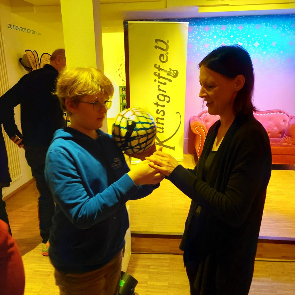 Miriam Willems zeigte eine beeindruckende Performance. Die Absolventin der staatlichen Zirkusschule Berlin ist seit 20 Jahren mit ihrem Partner Sebastian Heller unterwegs mit Spezialisierung auf Fussballartistik. Der Durchbruch kam damals zur Fußball WM 2006 in Deutschland. Sie wurden gebucht für Werbe-Sports, traten in der Allianz Arena vor 60.000 Zuschauer auf und sind begehrt in ganz Europa, egal ob Firmen Feier oder Auftritten bei Champions-League Spielen. Basti Knobl von der Kenia Kinder Hilfe führte mit Miriam Willems einen kleinen Trick auf, bei dem sie ihm einen Fussball auf dem Zeigefinger andrehte und dieser zahlreiche Umdrehungen abspulte.